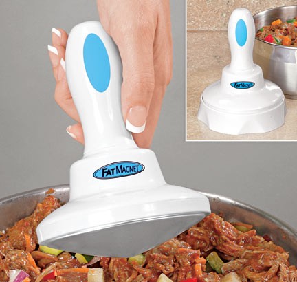 Раньше вам приходилось собирать жир ложкой, но теперь с помощью Fat Magnet это стало намного проще. Просто охладите устройство в холодильнике, поднесите его к блюду и водите им по поверхности. Жир будет магнититься к устройству автоматически, оставляя вашу еду более диетической и здоровой.